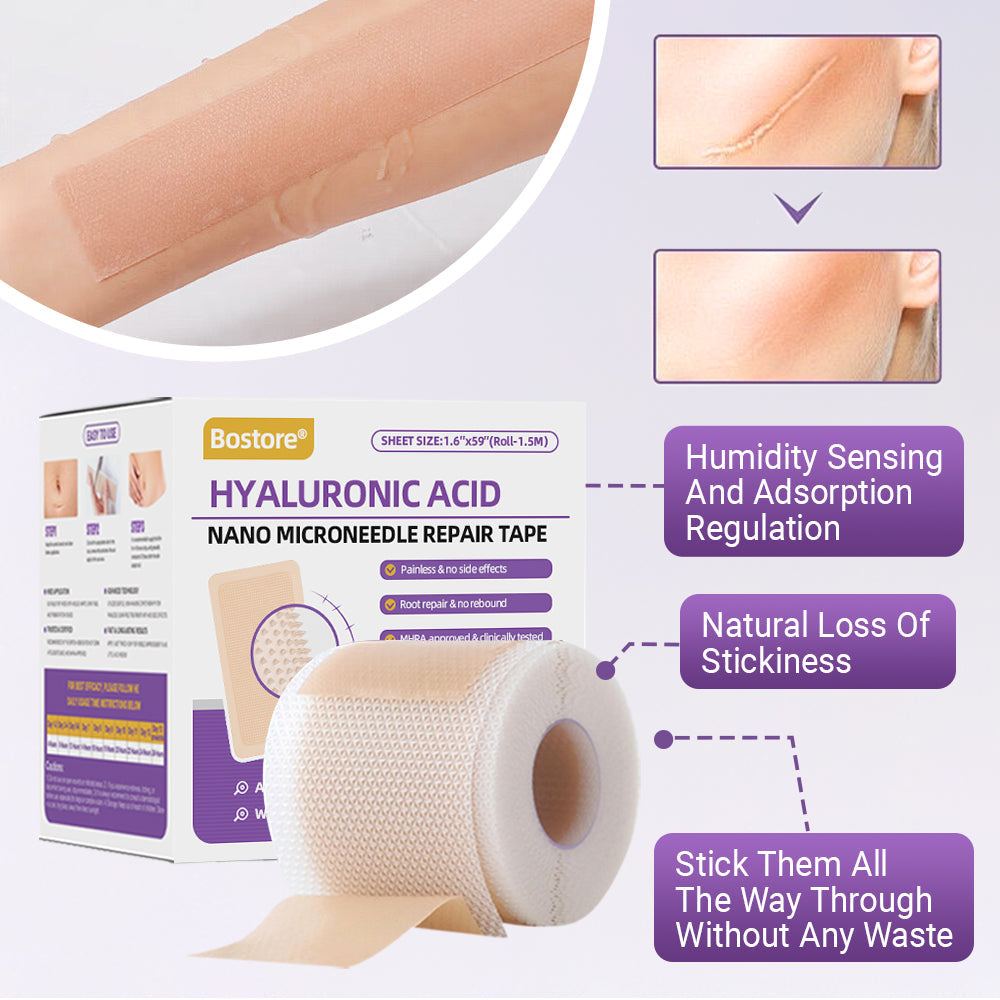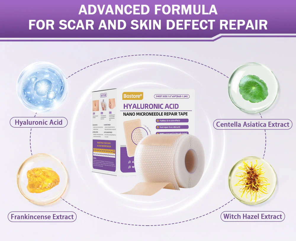 A 𝐵𝑜𝓈𝓉𝑜𝓇𝑒® Hialuronsav Nano Mikrotűs Javító Tapasz, amelyet bőrgyógyász szakértők fejlesztettek ki, a hegeket, striákat, szemölcsöket, bőrcímkéket, keratózist és visszérproblémákat célozza meg – mindössze egy egyszerű megoldással.